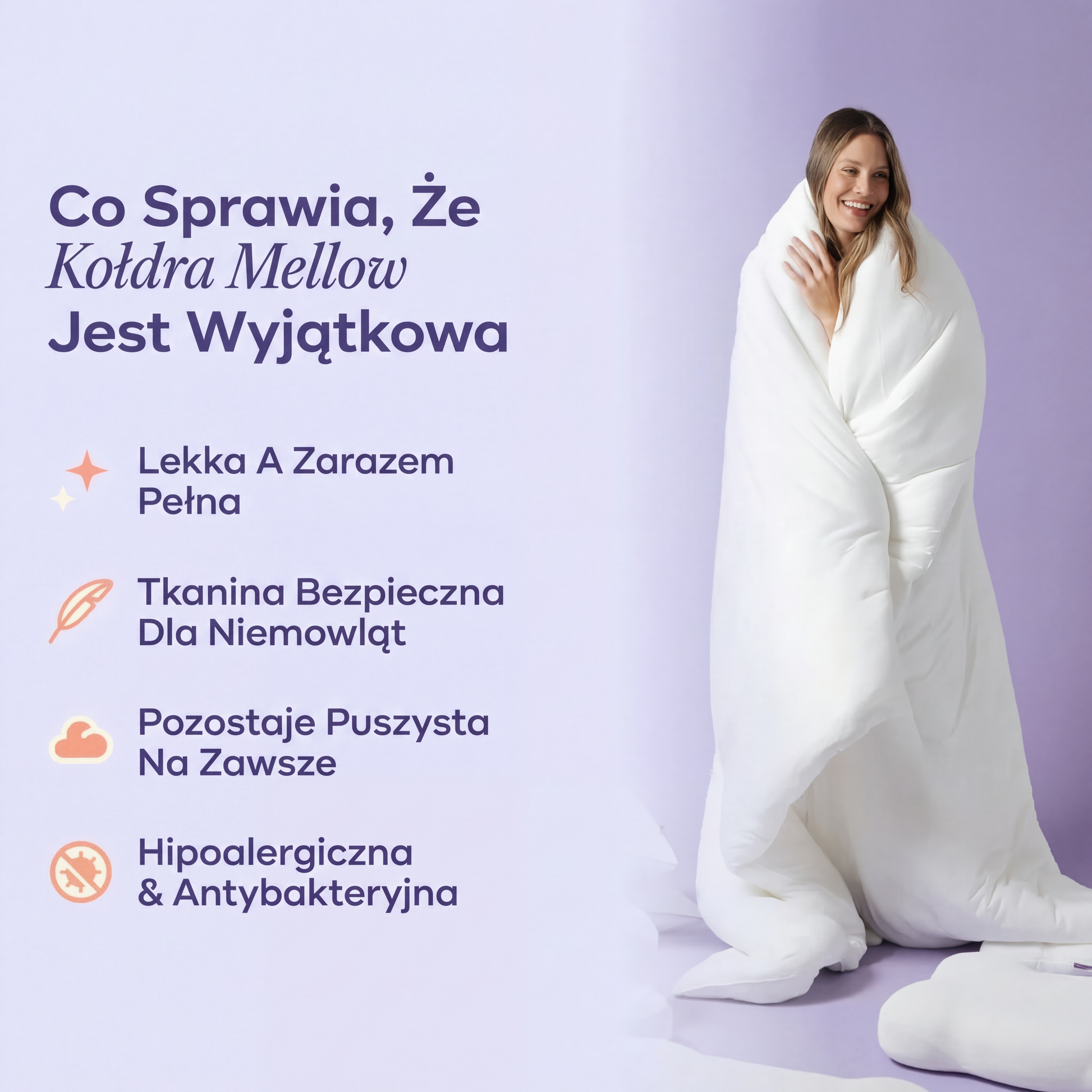 Poznaj Kołdrę Mellow: puszystą, miękką i niewiarygodnie przytulną.