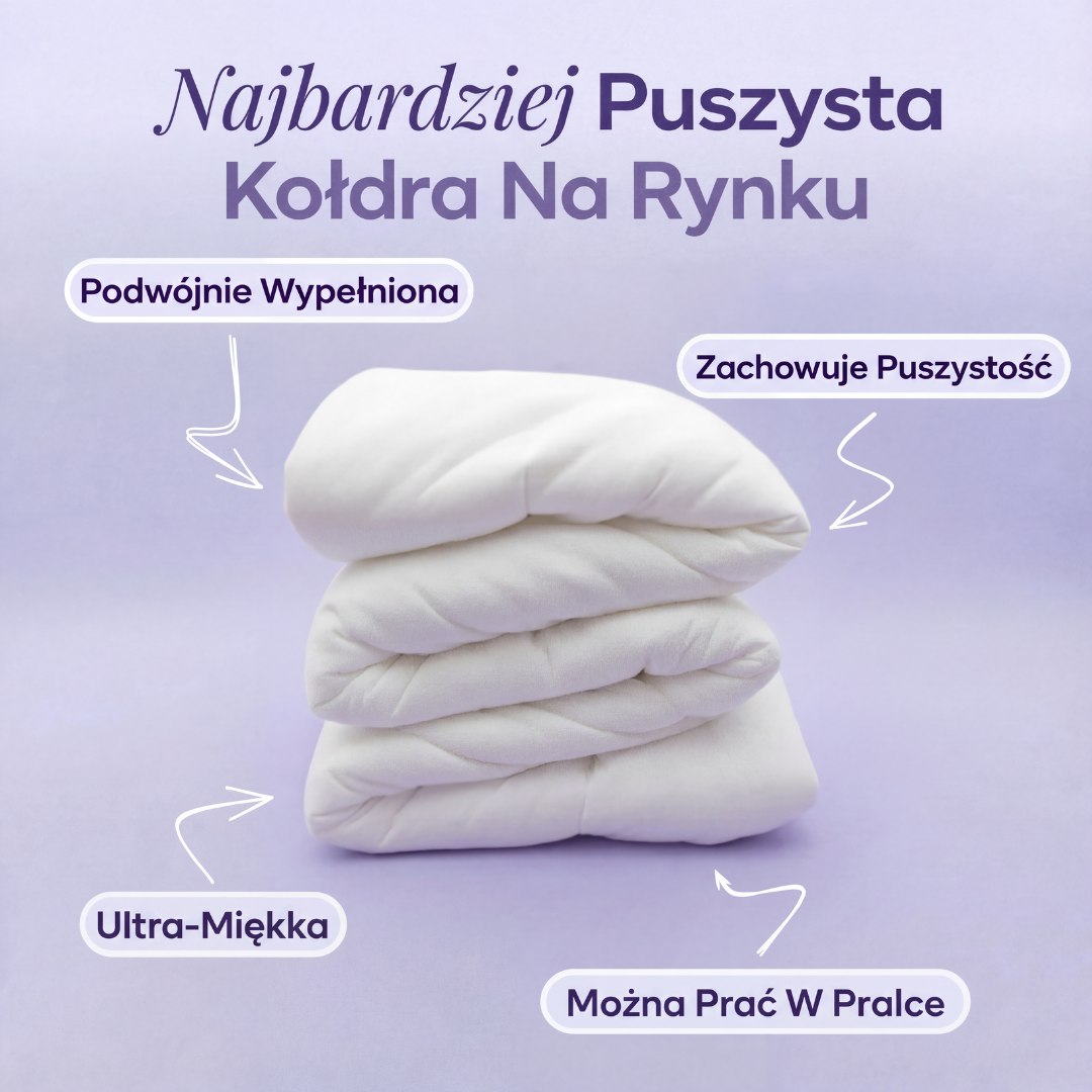Nie. Mimo podwójnego wypełnienia, kołdra jest lekka i oddychająca. Klientki opisują ją jako „idealny balans” — wystarczająco puszysta na zimową noc, ale komfortowa także w cieplejsze dni.