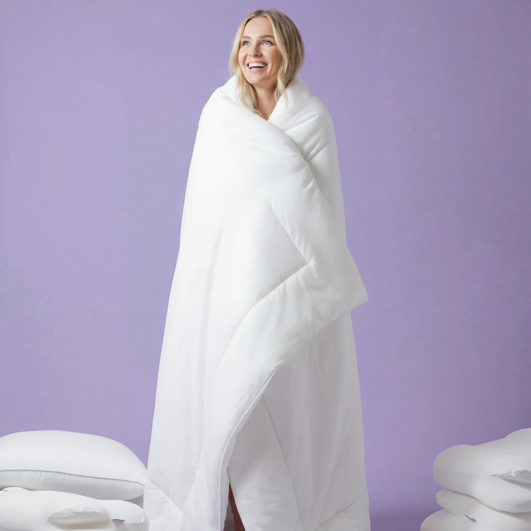 Każda kołdra Mellow ma wegańskie wypełnienie z mikrofibry premium, które imituje puch — ale jest czystsze, lżejsze i wolne od alergenów oraz zapachu. 100% wegańskie, bezpieczne i pozyskiwane w sposób zrównoważony.